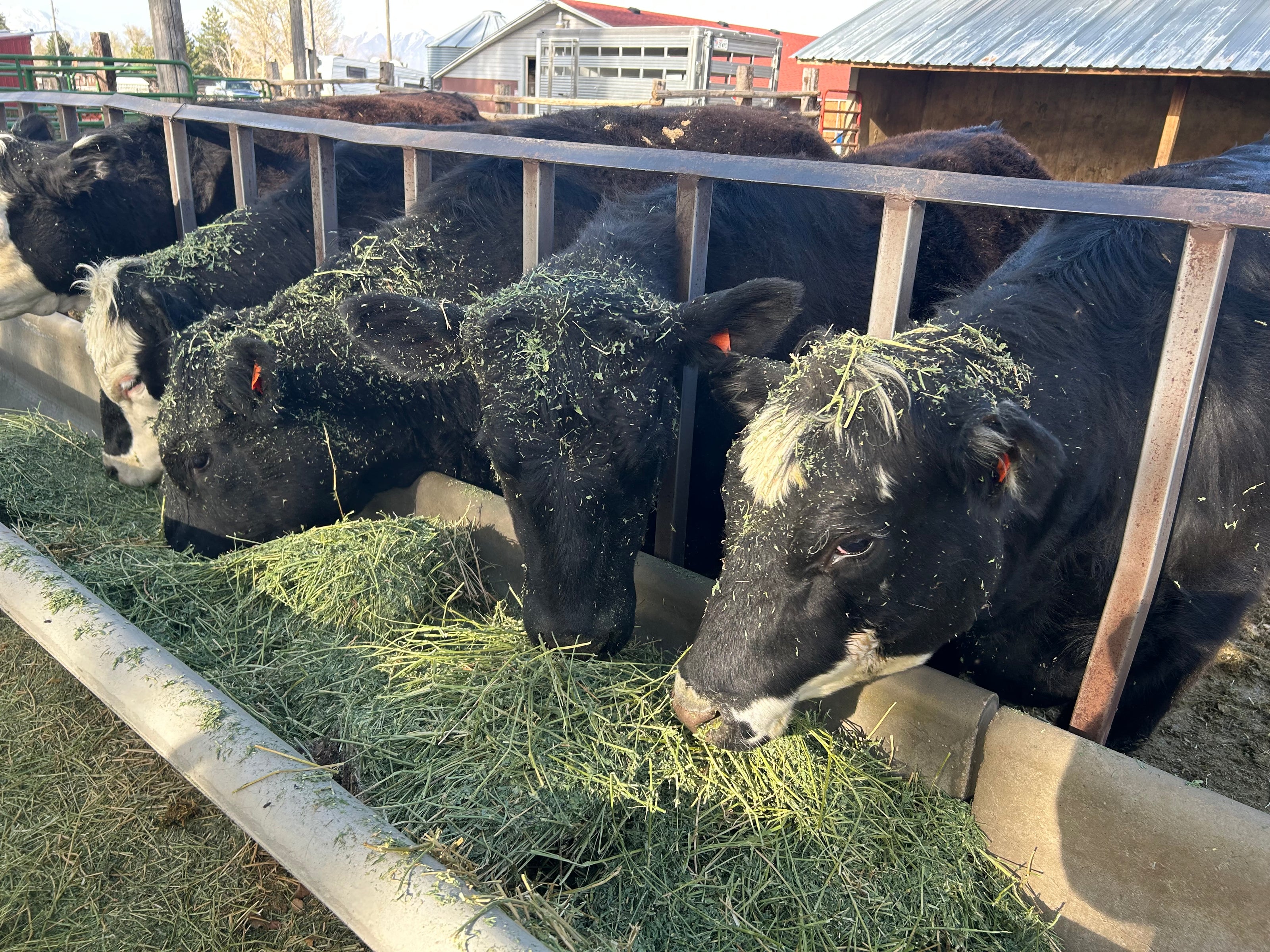 Our cattle are purchased from some of the finest ranches in Utah. We bring them in at around 500 pounds (six to eight months old) and turn them out to graze. We supplement them when the grass needs a rest. In the winter they are fed the finest alfalfa, sainfoin, and grass mix. The more mature animals are also given about a quart or less of grain night and morning for finishing.